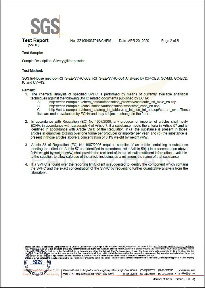 GLITTER REACH CERTIFICATE